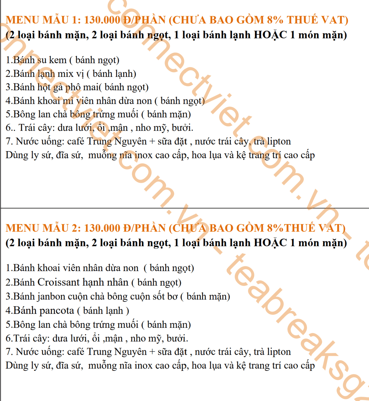 Đặt Tiệc Teabreak Quận 1 – P. Sài Gòn, P. Tân Định – Menu Ngon / Connectviet