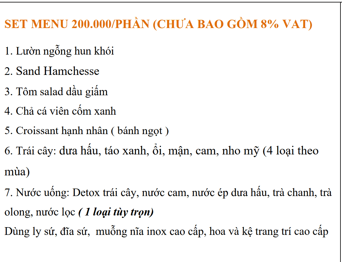 Menu Teabreak- Dịch Vụ Tiệc Trà Trọn Gói