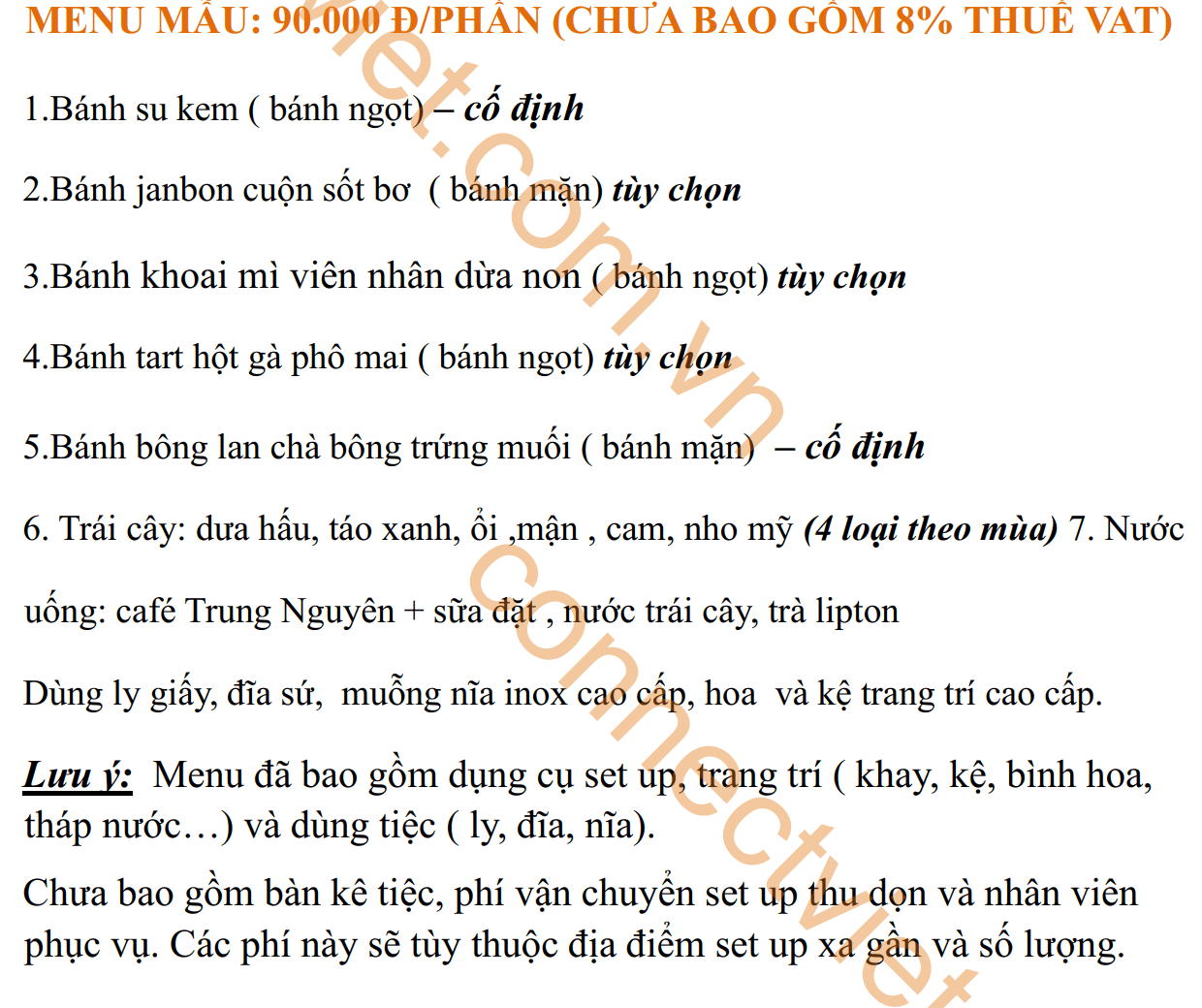 • Đặt Tiệc Teabreak Quận 1 – P. Sài Gòn, P. Tân Định – Menu Ngon / Connectviet